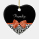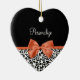 Das elegante, schwarz-weiße leopardenfarbene, herzförmige Ornament mit einem eleganten, orangefarbenen Band, das in einem ausgeklügelten Bogen befestigt ist, verleiht dem Mädchen den Namen eines Mädchens. Dieses stilvolle Tierdesign ist ein flaches gedrucktes Bild und enthält kein echtes Band.