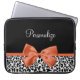 Personalisieren Sie es, indem Sie den Namen eines Girly Girl zu diesem schicken schwarz-weißen Leopardenprint 15'' neopren Laptop Ärmel mit einem eleganten, verbrannten orangefarbenen Band in einem raffinierten Bogen. Dieses stilvolle Tierdesign ist ein flaches gedrucktes Bild und enthält kein echtes Band.
