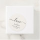 Schick helle, cremefarbene Geschenkanhänger für Ihre Gastgeschenke Hochzeiten mit "Liebe + Dank" in einer Mischung aus schlichter moderner Schrift und einem eleganten Drehbuch mit Schlagzeug, Ihren Namen verbunden durch ein Herz und Ihr Hochzeitstag.