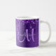 Genießen Sie Ihren morgendlichen Kaffee im Stil dieser lila und eleganten Kaffee-Tasse aus Glitzer mit einer lila gebürsteten Metallstruktur aus Imitat und einem lila Tropfen-Glitzer. Personalisieren Sie mit Ihrem Monogramm und Namen in der modernen Schriftzypografie. Entworfen für Sie von ExtremeTees. Viel Spaß!