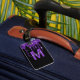 Reisen Sie stilvoll mit diesem individuellen Glitzer und Glam Gepäcksack Anhänger Das elegante Design verfügt über eine Grenze an der Spitze der Imitate lila tropfende Glitzer mit Glitzern. In der Mitte ist Ihr Monogramm initial in lila mit Ihrem Namen in einem modernen, handgeschriebenen weißen Skript auf einem Hintergrund von schwarz. Die Rückseite des Gepäckanhängers hat Ihren Namen und Ihre Adresse, um sie zu personalisieren. Entworfen für Sie von Extreme T-Shirts!