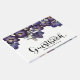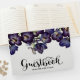 Erleben Sie eine wunderschöne Mischung aus feminin und chic dunkel lila mit diesem hübschen Blumenzettel für Hochzeitsgäste im Foto.