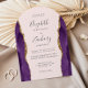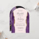 Diese elegante, bogenförmige, moderne Hochzeitseinladung besticht durch lila Aquarellseiten mit vergoldetem Imitat-Glitzer. Der anpassbare Text kombiniert handgeschriebene Holzkohle, Copperplate und kursiv Schriftart auf einem rot-rosa Hintergrund. Auf der Rückseite ist ein lila und goldenes Design zu sehen.