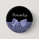 Ein eleganter und stilvoller lila Jaguar-Leopard-Druckknopf mit einem lavenierfarbenen Band, das in einen niedlichen Bogen gebunden ist. Personalisieren Sie diese mädchenhafte Etikette mit dem Namen Ihres Teenagers. Flachdruckbild, nicht eigentlicher Bogen.