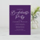 Diese elegante königslila Einladung zur Junggesellinnenparty enthält eine individuell angepasste weiße Typografie für eine Braut, die mit ihren Brautjungfern einen Abend verbringen wird. Eine stilvolle, minimalistische Einladung zur Junggesellinnenparty.