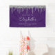 Begrüßen Sie die Gäste mit diesem schicken, glamourösen Party-Banner aus dem 40. Jahrhundert mit einem funkelnd silbernen Imitat Tropfen-Rahmen und lila Hintergrund. Personalisieren Sie es mit ihrem Namen in silbergraue Handschrift, mit dem Geburtstag und Datum unten in sans Serif Schriftart.