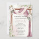 Das Design umfasst Grünpflanzen und einige Blumenelemente mit rosa und lila Aquarellfarben-Blume und einem weißen Baldachin mit Holz und grünen Wäldern Eukalyptus-Blätter. Kalligraphie und Typografie in schwarz und lila lila. Dies ist ein Mix- und Match-Sammelstück. Ideal für Ihre Hochzeitsfeiern!