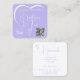 Chic Lilac White Calligraphy Herz Logo QR-Code Quadratische Visitenkarte