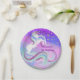 Ein schönes Einhorn mit bunten, wirbelnden Mähne und Schwanz, Imitate Glitzer Silberstars und ein mehrfarbiger lila Hintergrund. Passende Geschenkartikel und Party in meinem Laden.