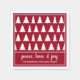 Gastgeber einer festlichen Feiertagsparty mit Papierservietten mit einem geometrischen, weißen Baummuster auf einem Maronuntergrund. Auf einem bordeauxfarbenen Band ganz unten steht "Peace, Liebe, & joy" in einem Schriftart mit weißer Schrift über deinem Namen in einem einfachen serifenlosen weißen Schriftart. Personalisieren Sie es, indem Sie einen benutzerdefinierten Gruß, Familiennamen und/oder das Jahr in der Sidebar hinzufügen. Um das schicke Design White Trees on Burgundy Weihnachtsmuster auf anderen Artikeln zu sehen, klicken Sie auf den Link "Rocklawn Arts" Kollektion unten. Digitales Bild. Copyright ©Claire E. Skinner. Alle Rechte vorbehalten.
