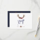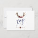Chic Marsala Floral Antlers Navy Blue Wedding RSVP Karte