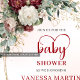 Chic Marsala Flowers Baby Shower Invitation Einladung