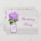 Elegante lila und graue rustikale Landgeburtstags-Party Einladungen für Frauen und Jugendmädchen mit einer niedlichen Vintagen Blumenillustration des lila und weißen Glasball-Maurerglases und des hübschen lila Hydrangea auf einem grauen hölzernen Effekthintergrund des stilvollen Shabby Chic. Nobles, modisches, modernes, girly modernes lädt perfektes für Frühling, Sommer, Fall/Herbst und Winterereignisse ein. Aller Text kann leicht besonders angefertigt werden, um Ihren Bedarf zu erfüllen und Sie können die Schriftartart, -farbe und -größe des Schriftartes ändern, wenn Sie wünschen. Wenn Sie irgendeine Unterstützung benötigen, die Ihr Produkt in Verbindung treten besonders anfertigt mit mir bitte, durch meinen Speicher und ich bin glücklich zu helfen. MERKEN SIE BITTE: Alles lädt auf Zazzle haben Ebenedruckbilder ein.
