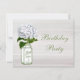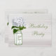 Elegante rustikale Landgeburtstags-Party Einladungen für Frauen und Jugendmädchen mit einer niedlichen Vintagen Blumenillustration des grünen und weißen Glasball-Maurerglases und des hübschen weißen Hydrangea auf einem grauen hölzernen Effekthintergrund des stilvollen Shabby Chic. Nobles, modisches, modernes, girly modernes lädt perfektes für Frühling, Sommer, Fall/Herbst und Winterereignisse ein. Aller Text kann leicht besonders angefertigt werden, um Ihren Bedarf zu erfüllen und Sie können die Schriftartart, -farbe und -größe des Schriftartes ändern, wenn Sie wünschen. Wenn Sie irgendeine Unterstützung benötigen, die Ihr Produkt in Verbindung treten besonders anfertigt mit mir bitte, durch meinen Speicher und ich bin glücklich zu helfen. MERKEN SIE BITTE: Alles lädt auf Zazzle haben Ebenedruckbilder ein.