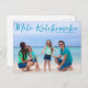 Chic personalisierbare Beach Foto Weihnachtskarte mit Ihrem Lieblings-Tropen-Foto in der Sonne. Fügen Sie ein Foto Ihres Lieblingsgedächtnisses von Ihrem Inselurlaub an die Küste an der Vorderseite. Schöne Postkarten an der Küste mit einem sauberen, modernen Design und hübsch blauem Schriftzeichen über dem Bild.