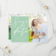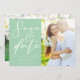Dieses weiche Pfefferminzgrün-Foto lädt Save the Date zu einer schicken, weißen Typografie für eine Sommerfeier im Freien ein. Einfach und elegant, einfach auf ruhigen, massiven pastellgrünen Karten für einen Gartenplatz.