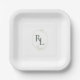 Minimalistisch und frisch. Diese wunderschönen Hochzeitszeitung-Teller verfügen über ein hübsches Paar Monogramm in einer Kombination von Grüntönen auf weißem Hintergrund.