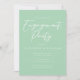 Diese sanfte, grüne Einladung zur Party-Party mit schick weißem Drehbuch für ein Sommerfest im Freien. Einfache Typografie auf einem ruhigen, massiven, pastellgrünen Grün laden zu einem Gartenlokal ein.