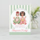 Host a stylish and memorable celebration with this trendy girls' sleepover birthday party invitation. It features a charming hand-drawn illustration of girls in pajamas against a clean mint green and white striped background with delicate polka dot accents. This design is perfect for a tween or young girl's slumber party where fun and friendship are the main events.