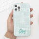 Dieses moderne und elegante Handy bietet einen handgezeichneten Crosshatch-Hintergrund in blassem Aqua und eine aquamarine Farbpalette mit Ihrem Namen in modernen Kalligrafien. Das ist der perfekte Fall für jeden, der ein elegantes Design will, das sich herausstellt. Es ist auch ein wunderschönes Geburtstag- oder Urlaubsgeschenk für jedermann!