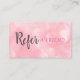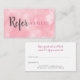 Eine schicke, moderne pinkfarbene Referenzkarte mit hübschem, rosafarbenem Bukh als Hintergrund mit eleganter Typografie. Ideal für ein breites Spektrum an Berufen, darunter Kosmetikerinnen, Haar- und Schönheitsberater, Stylist, Makeup-Künstler und Wellness-Center um nur einige zu nennen! Personalisieren Sie Ihre Kontaktdaten auf der Rückseite mit Ihrem speziellen Rabattangebot. Entwickelt von Thisisnotme©