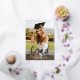 Diese Ankündigung des Abschlusses beinhaltet ein vollrahmenloses Foto und ein modernes Drehbuch "Grad" in hochauflösender Goldfolie auf der Vorderseite. Auf der Rückseite gibt es ein weiteres Foto und Einladungstext für eine Abschluss-Feier. Foto und Text auf der Rückseite können auf Wunsch ebenfalls entfernt werden.