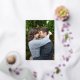 Moderne Hochzeitseinladung mit Ihren Veranstaltungsdetails über Ihr liebstes vertikales Foto mit den Worten "die Hochzeitsfeier von" in einem eleganten Drehbuch. Die Rückseite hat ein zusätzliches Bild.