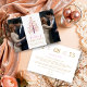 This design features a modern and elegant composition with a charming pink Christmas tree combined with subtle faux gold effects that add a festive and sophisticated touch. The card includes two carefully integrated photographs, creating a contemporary, bright presentation perfect for couples celebrating their wedding during the holiday season or wishing to announce their special date with refined and contemporary style. The harmony between the soft colors, Christmas details, and modern aesthetic makes this design an ideal choice for those seeking a festive option with personality and charm.
