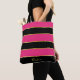 Genießen Sie Ihren Stil mit einer schicken Tasche mit zeitgenössischen schwarz-rosa Streifen. Elegante goldene Linien teilen die Farben und erhöhen die Eleganz des Designs. Passen Sie es mit Ihrem Namen, Mono oder jedem Text an, den Sie bevorzugen. Alternativ können Sie sich für ein schlankes Aussehen entscheiden, indem Sie den Beispielnamen entfernen.