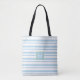 Passen Sie diese elegante Monogram White and Light Blue Stripes Tote Bag mit Ihrem Initial an und fügen Sie Ihrem Zubehör eine einzigartige, stilvolle Touch hinzu.