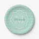 Chic Monogram Minze Green Hahnentrittmuster mit Na Pappteller