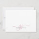 Ein elegantes, modernes, rosa Initial-Monogramm auf Mitteilungskarten, mit einem dramatischen Skript, das mit Swashes beginnt und Ihren vollen Namen in einem modernen Serifentyp. Einfache Eleganz. Achten Sie darauf, vor dem Kauf Ihre bevorzugte Größe für die Karte auszuwählen.