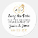 Feiern Sie stilvoll mit diesen stilvollen und sehr trendigen Hochzeiten speichern Sie die Dattelaufkleber. Dieses Design lässt sich leicht mit Ihrer speziellen Veranstaltungssprache personalisieren und Ihre Gäste werden begeistert sein, wenn sie diese fabelhaften Aufkleber erhalten.