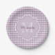 Chic-Monogramm-hellpurpurnes Hahnentrittmuster mit Pappteller