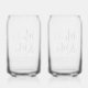 Eine schicke Hochzeit kann Set für Neuvermählte mit "Mr. & Mrs." in einem großen, eleganten Drehbuch und einer Darstellung von zwei Herzen vereint. Fügen Sie die Namen der Braut und des Bräutigams und das Hochzeitdatum hinzu.