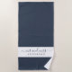 Chic dunkelblau und weiß mit Monogramm Badetuch mit dem Text Mr. und Mrs. in eleganter Schrift. Sie können dieses elegante Badetuch mit Ihrem verheirateten Namen anpassen. Perfektes Geschenk für das frisch gezogene Paar. Exklusiv für Sie entworfen von Happy Dolphin Studio.