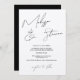Moderne, schicke und elegante Hochzeitseinladung mit individuellen Namen mit handgeschriebener Kalligraphie in Schwarz und Weiß. Alle Texte, Namen und Hintergrundfarben sind anpassbar. Eine einfache und minimalistische Einladung.