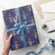 Dieses Verpackungspapier zeigt schicke Imitate Goldfolie Königin Bienenmuster auf marineblau Hintergrund.