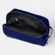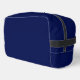 A chic personalized navy blue monogram dopp kit toiletry bag for a guy or girl who loves simple, handwritten gifts. Beautiful white cursive script spelling out your name in elegant script.