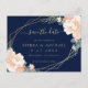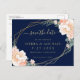 Chic Navy Blue Peach Gold Floral Save the Date Ankündigungspostkarte