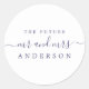 Der schicke, moderne und schlichte Hochzeitstext mit dem künftigen Umschlag Aufkleber Mr. und Mrs. in marineblauer Schrift-Kalligraphie und stilvoller Typografie auf weißem Hintergrund. Fügen Sie einfach Ihren zukünftigen verheirateten Nachnamen hinzu. Exklusiv für Sie entworfen von Happy Dolphin Studio. Wenn Sie Hilfe oder passende Produkte benötigen, kontaktieren Sie uns bitte unter happydolphinstudio@outlook.com. Wir helfen Ihnen gerne, Ihre Hochzeit zum schönsten Tag zu machen!