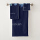 Chic Navy Blue Sea Life Family Name House Badhandtuch Set