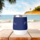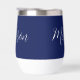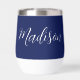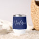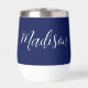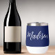 Eine schicke, marineblaue, personalisierte Monogramm-Weine-Taumelin für ein Mädchen oder einen Typ, das einfache, handgeschriebene Geschenke Liebe. Schönes weißes kursives Drehbuch, das den Namen in der modernen Typografie absteckt.