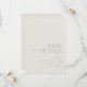 Diese schicke Hochzeitssuite mit ihrer warmen, neutralen Farbpalette und dem minimalistischen Design hat einen zeitlosen und raffinierten Look, der Ihre Gäste beeindruckt und dazu beiträgt, Ihren besonderen Tag unvergesslich zu machen. Diese markante, vertikale "Save the Date" Karte, hier in Knochen weiß gezeigt, hat eine Vorlage, um leicht Ihre Namen, Hochzeitstag und Website-Informationen hinzuzufügen. Suchen Sie ID1020 um alle Produkte in dieser Hochzeitssuite zu sehen.