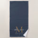 Chic Newlywed Gold Monogram Script Names Dark Blue Strandtuch