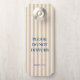 Dieser elegante Türhänger "Do Not Disturb" eignet sich perfekt für Ihre Zuhause oder Ihr Unternehmen. Ein vielseitiges Design mit stilvoller Serifentypografie und einem schlichten Streifenmuster mit Imitat-Leinen-Look. Diese bearbeitbare Vorlage kann auf beiden Seiten angepasst werden, um ihr einen doppelten Zweck zu geben. Es ist ideal, um die Privatsphäre der Gäste in einem Hotel zu gewährleisten, oder um Reinigungs- und Wartungsdienstleistungen zu gewährleisten. Sie können es auch nutzen, um Ihre Privatsphäre während persönlicher Aktivitäten wie Meditation oder Napping, oder während geschäftlicher Termine in Kliniken, Wellness-Centern oder Therapiesitzungen zu schützen. Bedruckte Farben: natürliches beige Gold, dunkelblau, Marine und weiß.