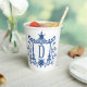 Diese chic pagoda Monogramm Becher sind perfekt für Unterhaltung und machen ein ausgezeichnetes Geschenk für die Gastgeberin. Die Pagode und das Monogramm sind in Marineblau auf Weiß.