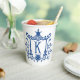 Diese chic pagoda Monogramm Becher sind perfekt für Unterhaltung und machen ein ausgezeichnetes Geschenk für die Gastgeberin. Die Pagode und das Monogramm sind in Marineblau auf Weiß.