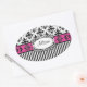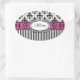 Chic Paris Pink und Black Damask und Streifen Ovaler Aufkleber