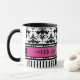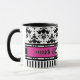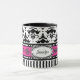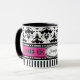 Eleganter Retro-Damast und schwarz-weiße Streifen mit einem heißen rosa Band in der Mitte. Fügen Sie Ihren eigenen Namen hinzu.